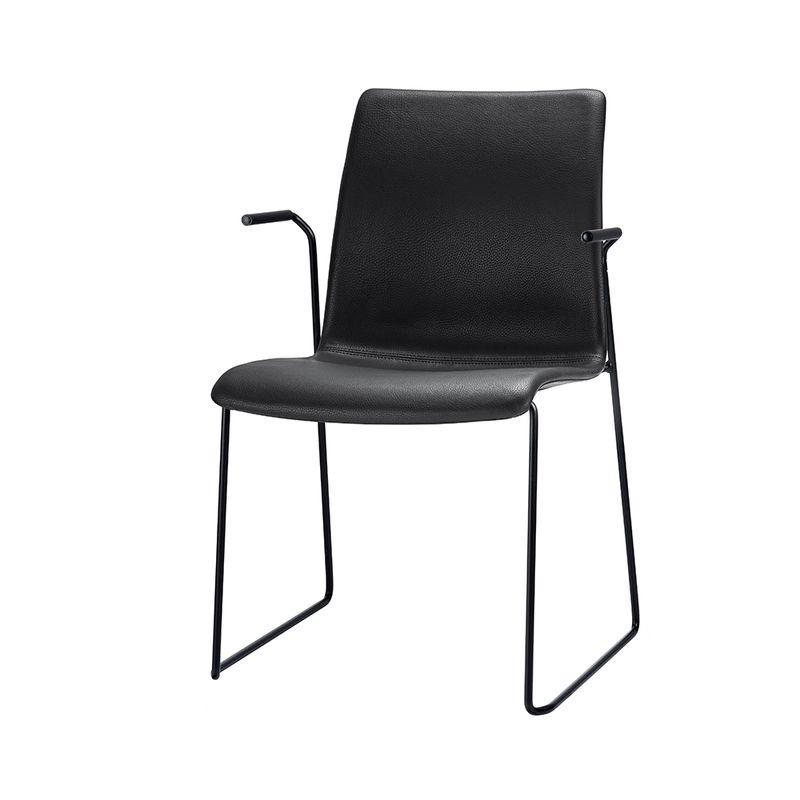 Das stapelbare Kufengestell wirkt mit und ohne Armlehnen immer leicht und reduziert. Die nach vorne offenen Armlehnen erinnern an den Großbuchstaben Gamma Γ aus dem griechischen Alphabet, sie bieten uneingeschränkte Bewegungsfreiheit und erleichtern das Handling. Die Oberfl äche der komfortablen Kunststoffschale ist auf der Rückseite glänzend und vorne dezent matt. Ob am Tisch oder in der Reihe, seine unaufdringliche Eleganz macht UNIGAMMA zu einem universell einsetzbaren Sitzmöbel, das dank optionalem Reihenverbinder auch funktional keine Wünsche offen lässt.